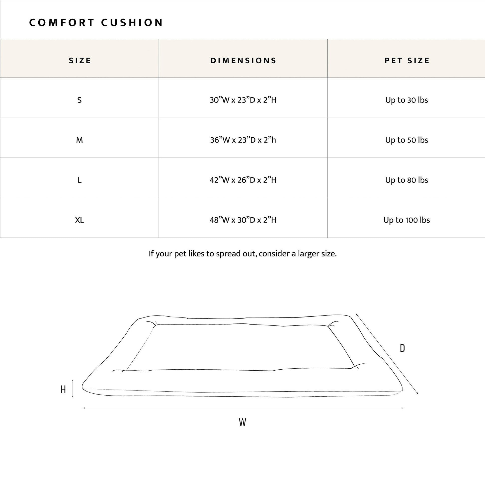 The Pendleton Pet Comfort Cushion is a versatile pet bed perfect for crates, taking on the go, or for pets who don’t like the height of a big bed. Featuring a cozy berber fabric, with a quilted canvas on the reverse, this bed is filled with high-loft polyester fill. The entire bed is machine washable, and can be hung up to air dry. Available in 4 sizes, we recommend measuring your pet for the most accurate fit.