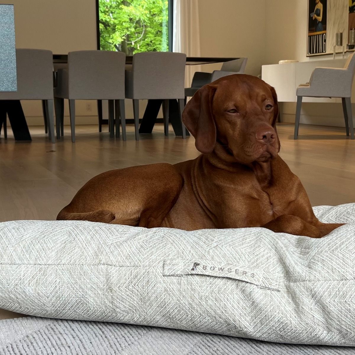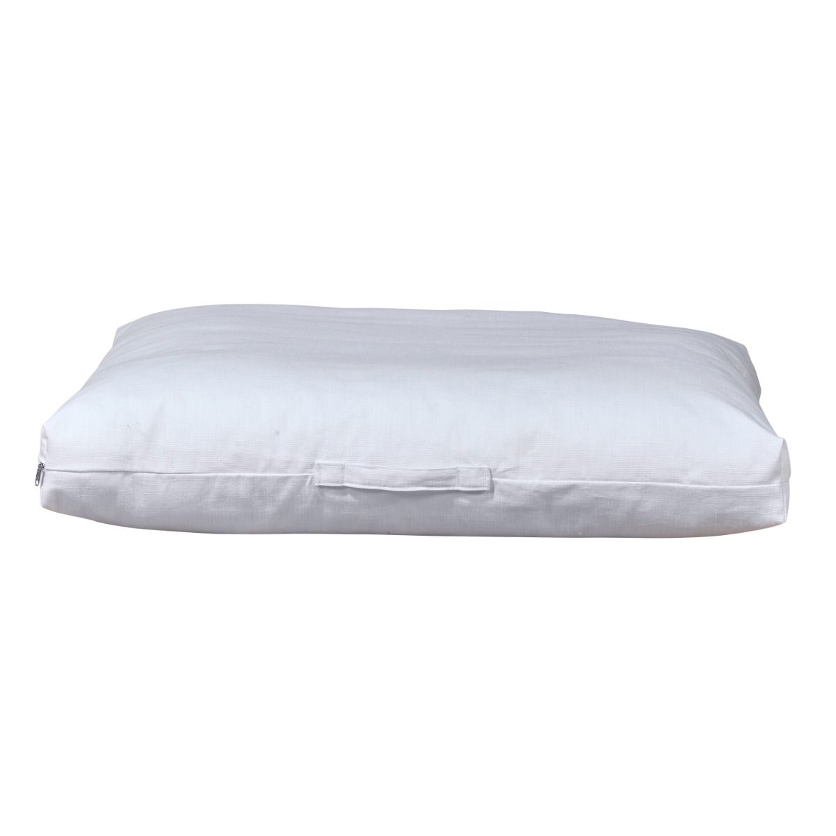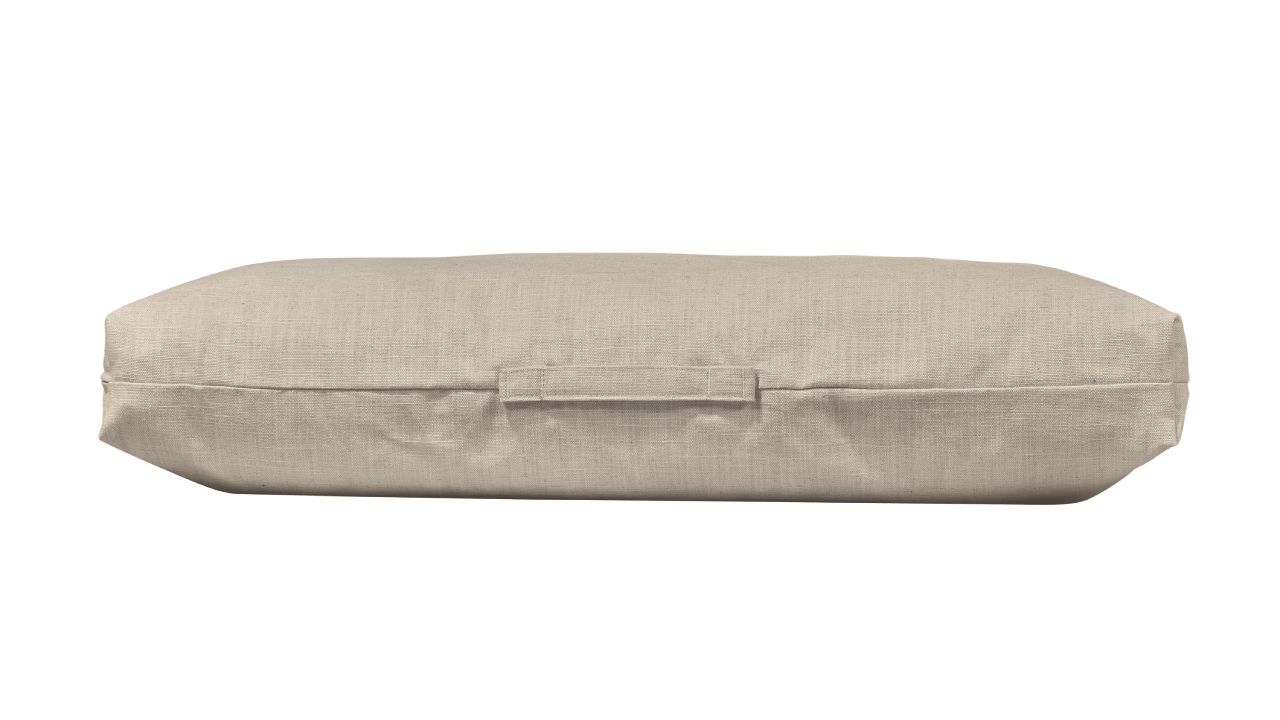 A modern twist on this classic rectangular shape, featuring our natural washed Cotton-Linen fabrics. The soft fiber tufted inner cushion gives this bed a sleek look without compromising comfort. Great for dogs that like to stretch out. Convenient handle make this a great bed for travelling.